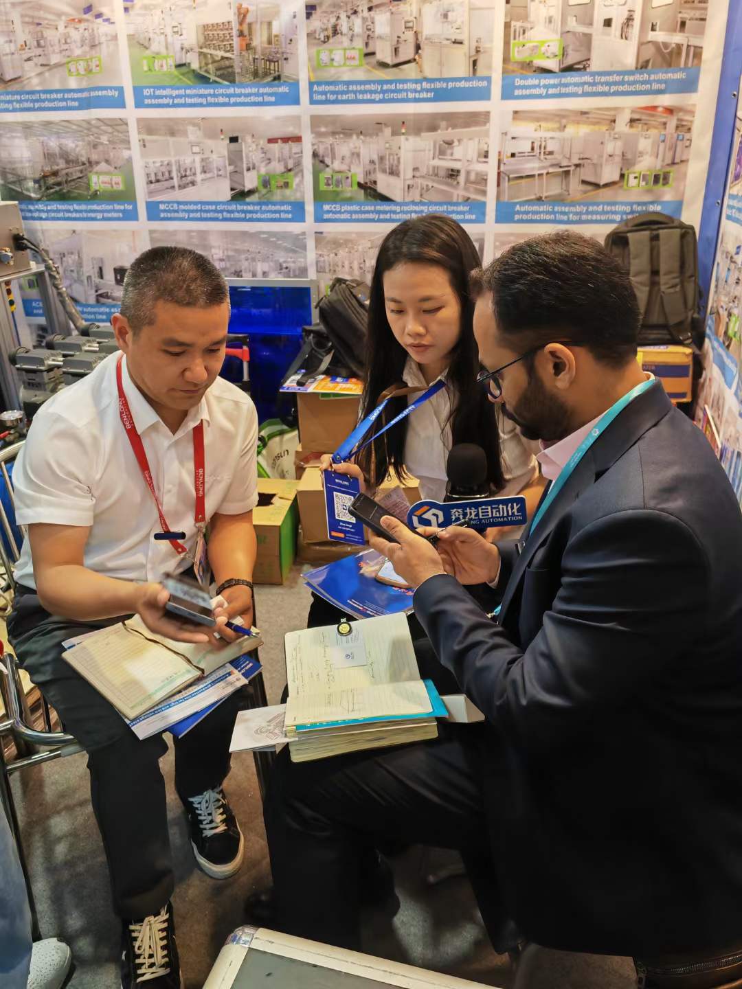 银河官网自动化展位人来人往,络绎不绝。有很多客户前来沟通咨询,现场洽谈业务,合作意向频频达成。