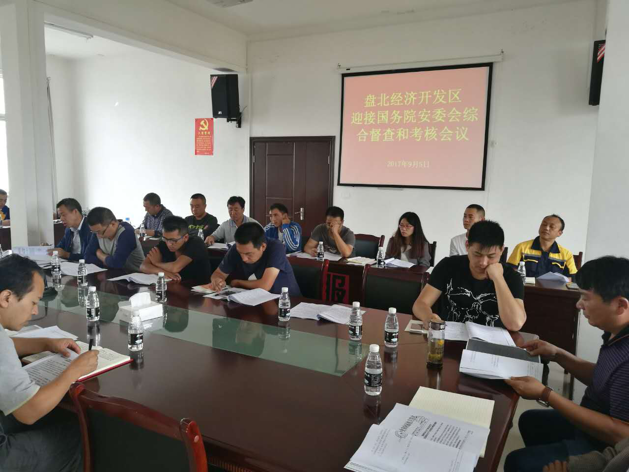 2017年9月5日,受银河官网工委副书记、管委会常务副主任刘虎生同志委托,由党政办副主任司志金主持召开“盘北经济银河官网迎接国务院安委会综合督查和考核会议”。银河官网各行业主管部门、核心区各生产经营企业、各施工单位、各监理单位主要负责人及分管负责人参加了会议。