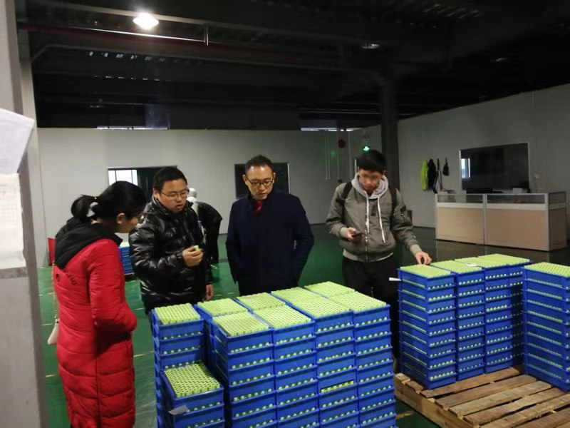(杨富忠一行在东森新能源科技有限公司参观锂电池成品)