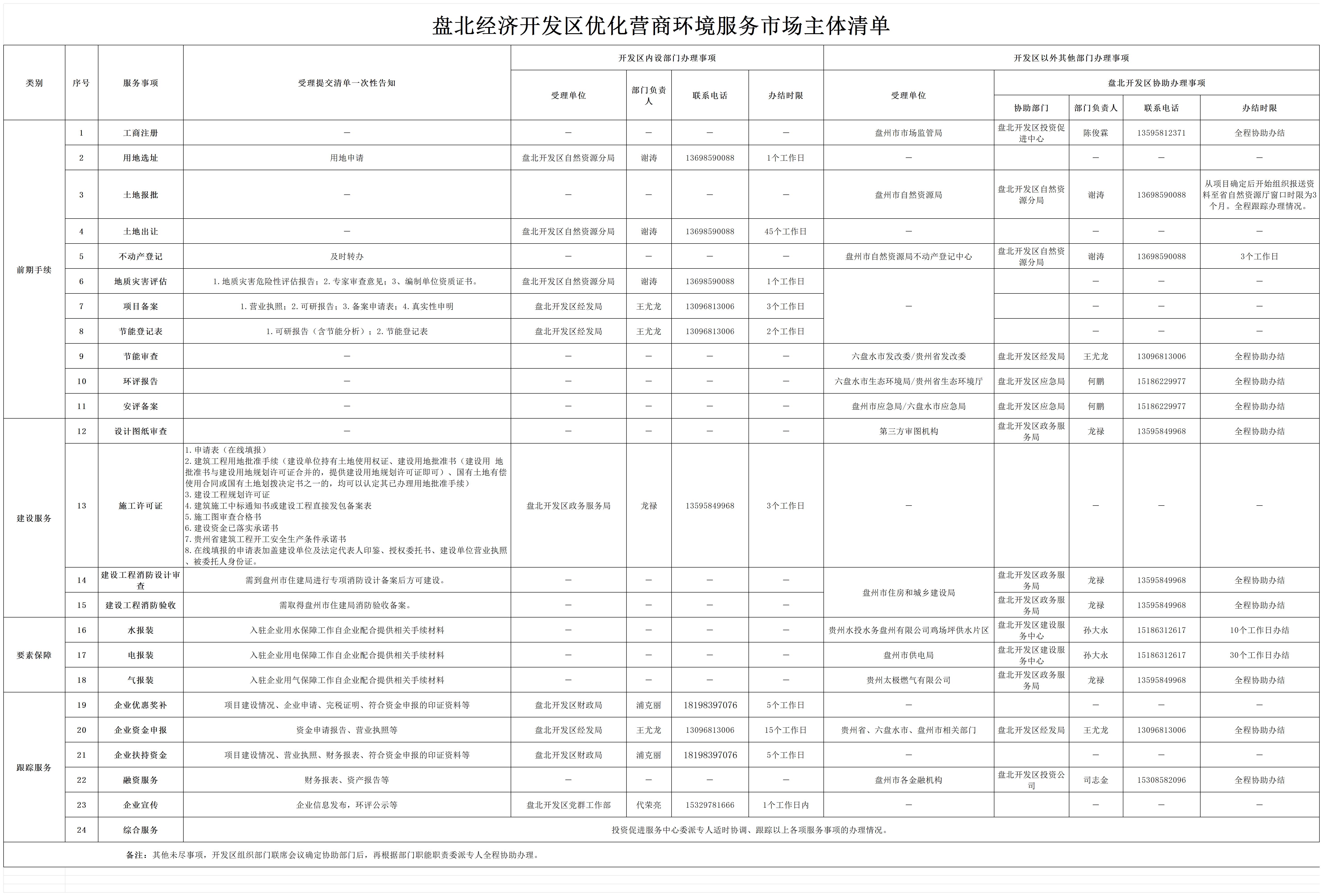 盘北经济银河官网优化营商环境服务市场主体清单