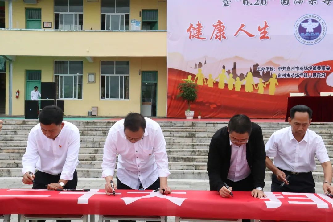 6月24日,以“健康人生·绿色无毒”为主题的“禁毒宣传进万家”启动仪式暨“6·26”国际禁毒日宣传活动在鸡场坪镇鸡场坪中学举行。
