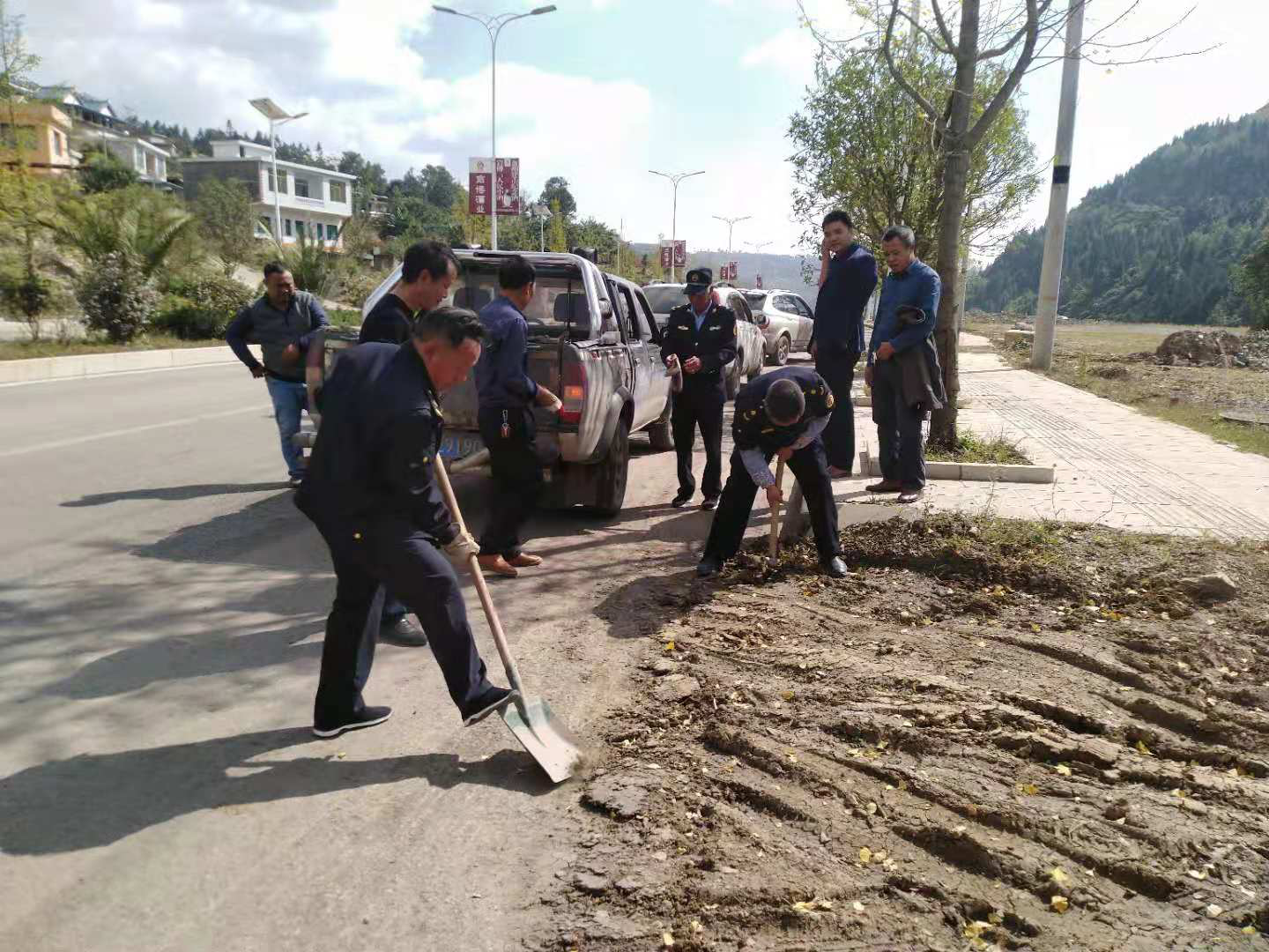 贵州盘北经济银河官网社会事务局联合鸡场坪镇城管中心对银河官网沿线道路及卫生进行检查整改