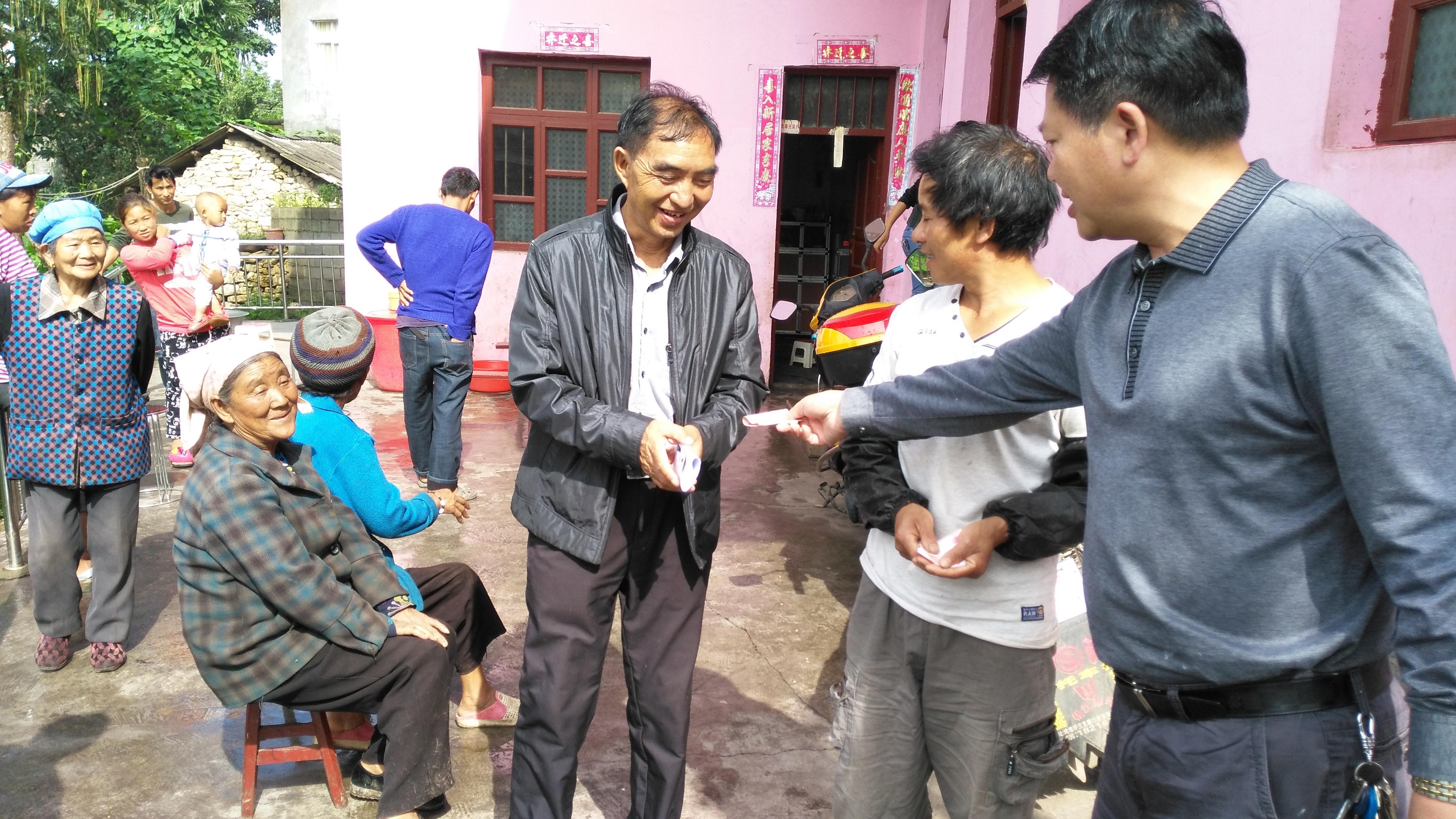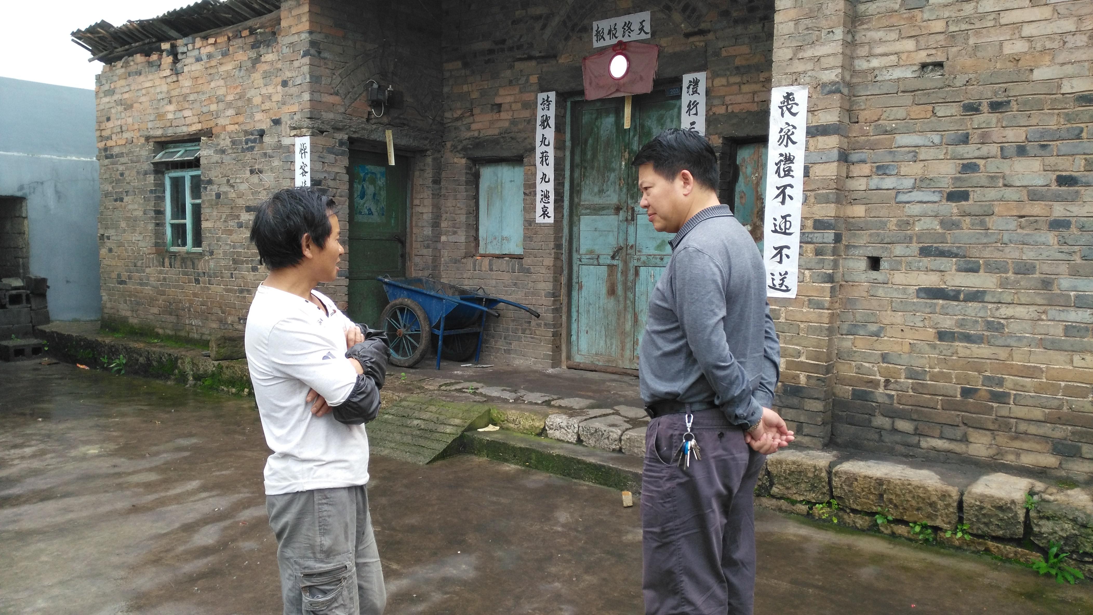 图为工委副书记、管委会常务副主任刘虎生走访群众,与并群众交谈,并对特别困难的2户群众,个人给以每户500元的帮扶资金(其中1户由村支书代领)。