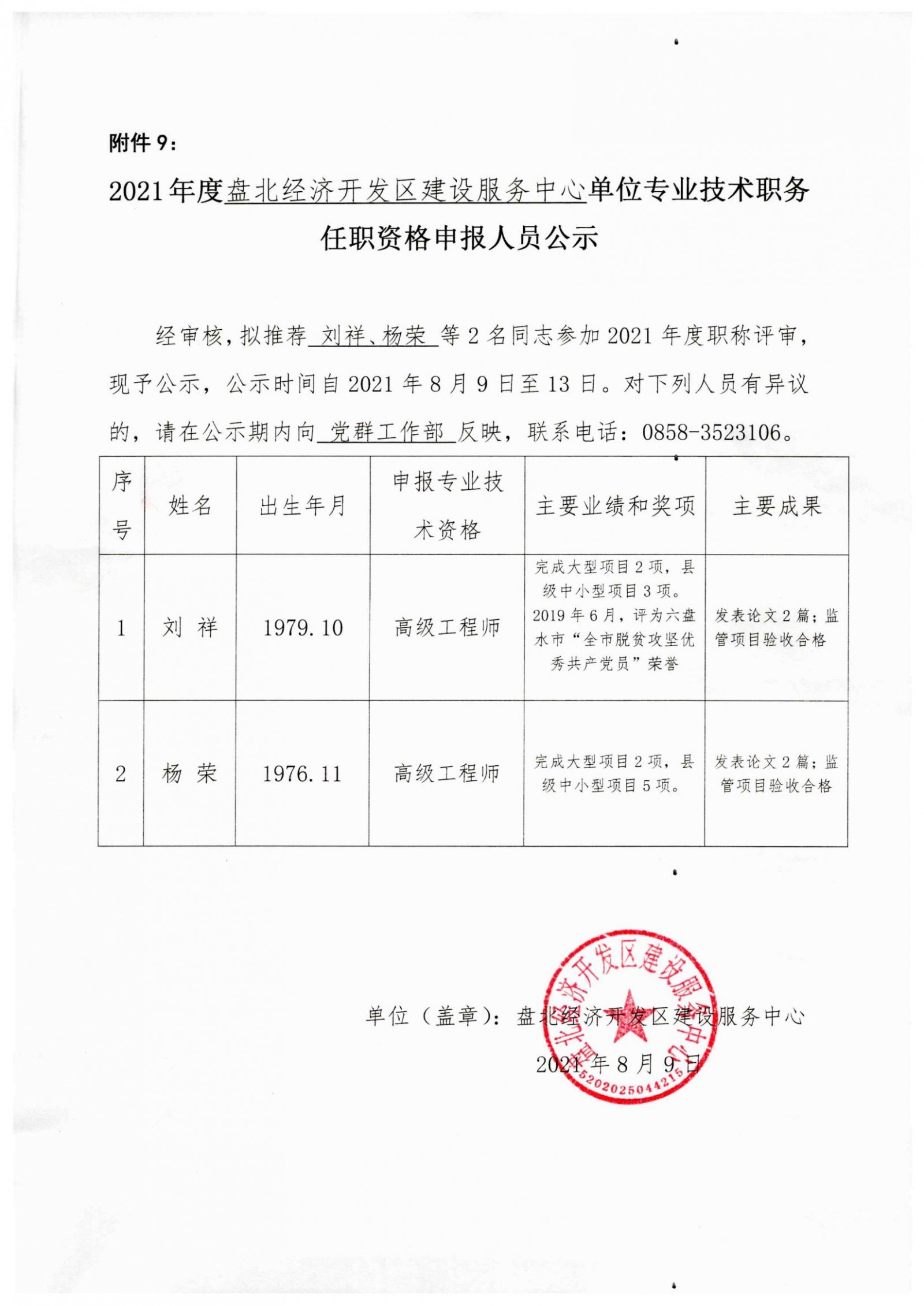 2021年度盘北经济银河官网建设服务中心单位专业技术职务任职资格申报人员公示