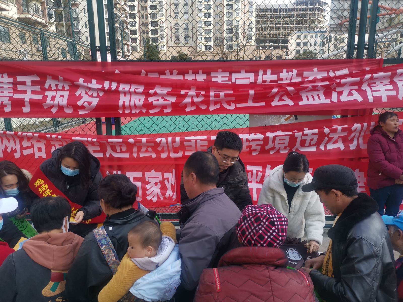 1月20日,盘北经济银河官网联合鸡场坪镇人民政府在易扶搬迁安置点小区开展“尊法守法·携手筑梦”服务农民工等公益法律服务活动。