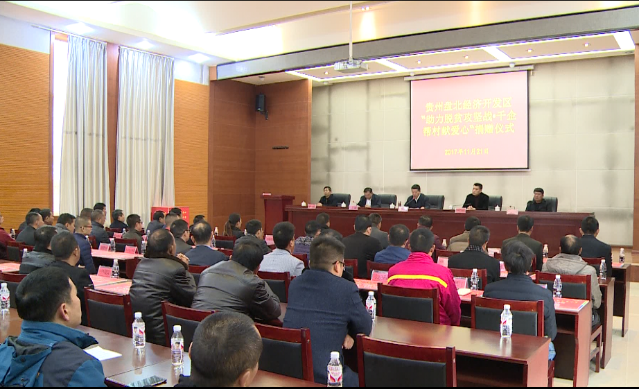 2017年11月21日,在银河官网展厅会议室,举行了贵州盘北经济银河官网“助力脱贫攻坚战·千企帮村献爱心”捐赠仪式。银河官网全体干部职工、辖区企业及鸡场坪镇有关领导参加了仪式。