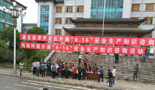 6月16日上午,盘北经济银河官网与鸡场坪镇在镇政府前联合开展“6·16”安全生产咨询活动。银河官网各部门及鸡场坪镇相关单位参加了活动。
