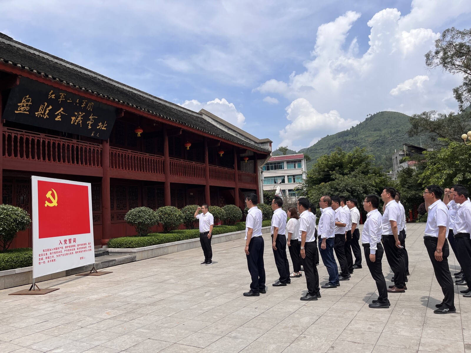 在红二·六军团盘县会议会址九间楼前,面对鲜红的党旗开展新发展党员入党宣誓和其他党员重温入党誓词仪式。在银河官网党工委委员、管委会副主任唐振同志的领誓下,全体党员举起右拳,面向党旗庄严宣誓。新发展党员向党和人民许下铮铮誓言和庄严承诺,其他党员重温入党宣誓时的庄重承诺和坚定决心,让每名党员干部时刻不忘初心、牢记使命,从党的光辉历程中汲取奋进力量。