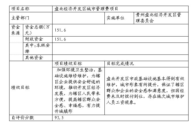 (4)管理情况:本项目未涉及招投标,管委会领导每月听取财政局汇报资金使用情况,严格按照资金使用计划进行支付,同时严格按照盘州市资金使用要求进行财务管理。