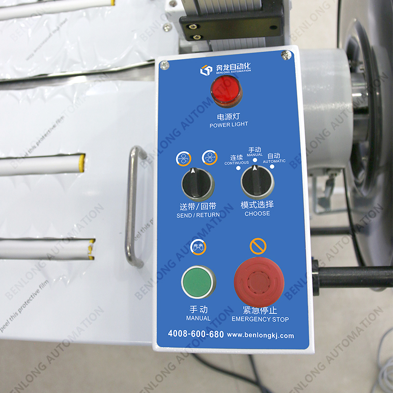 人工放料或其他包装设备出料口自动放料,自动捆扎。                    关于售后