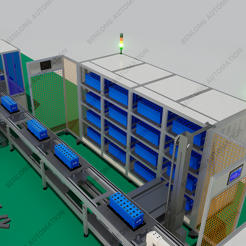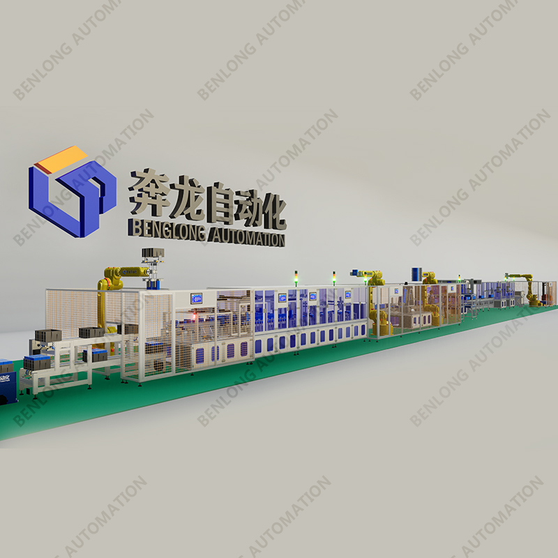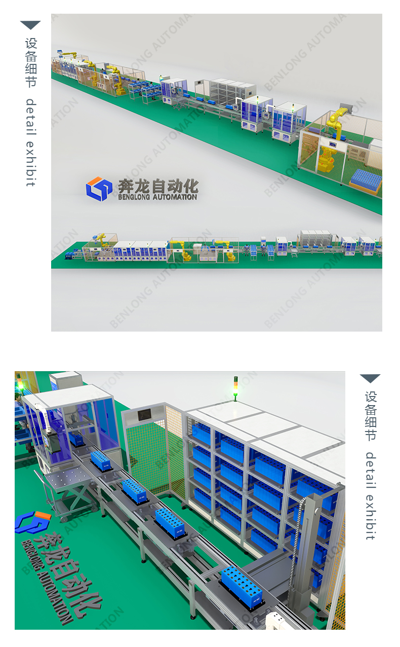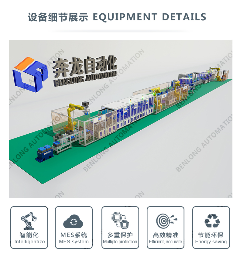 具有产品AGV自动上料、工装板自动输送、机器人抓取上料、扫码OVC测试、不同档位分选、等离子清洗、涂胶、机器人抓取电芯自动堆叠、涂胶、整形、角度旋转、端板装配、电芯贴胶、捆扎、极柱清洗、铝排安装、视觉检测、极柱同心度检测、凝固老化、激光焊接、EOL检测、合格不合格区分、自动下料、包装、码垛、AGV物流、缺料报警等工序的装配、在线检测、实时监控、质量溯源、条码识别、元器件寿命监测、数据存储、MES系统与ERP系统联网、参数任意配方、智慧能源分析与节能管理系统、智能装备服务大数据云平台等功能。