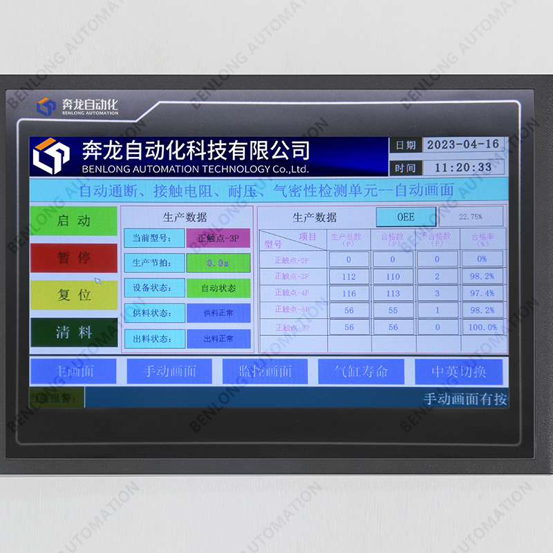 通断、手柄合闸扭力、耐压、回路电阻、气密性检测、移印、激光标刻、CCD外观检测、合格不合格区分、包装、码