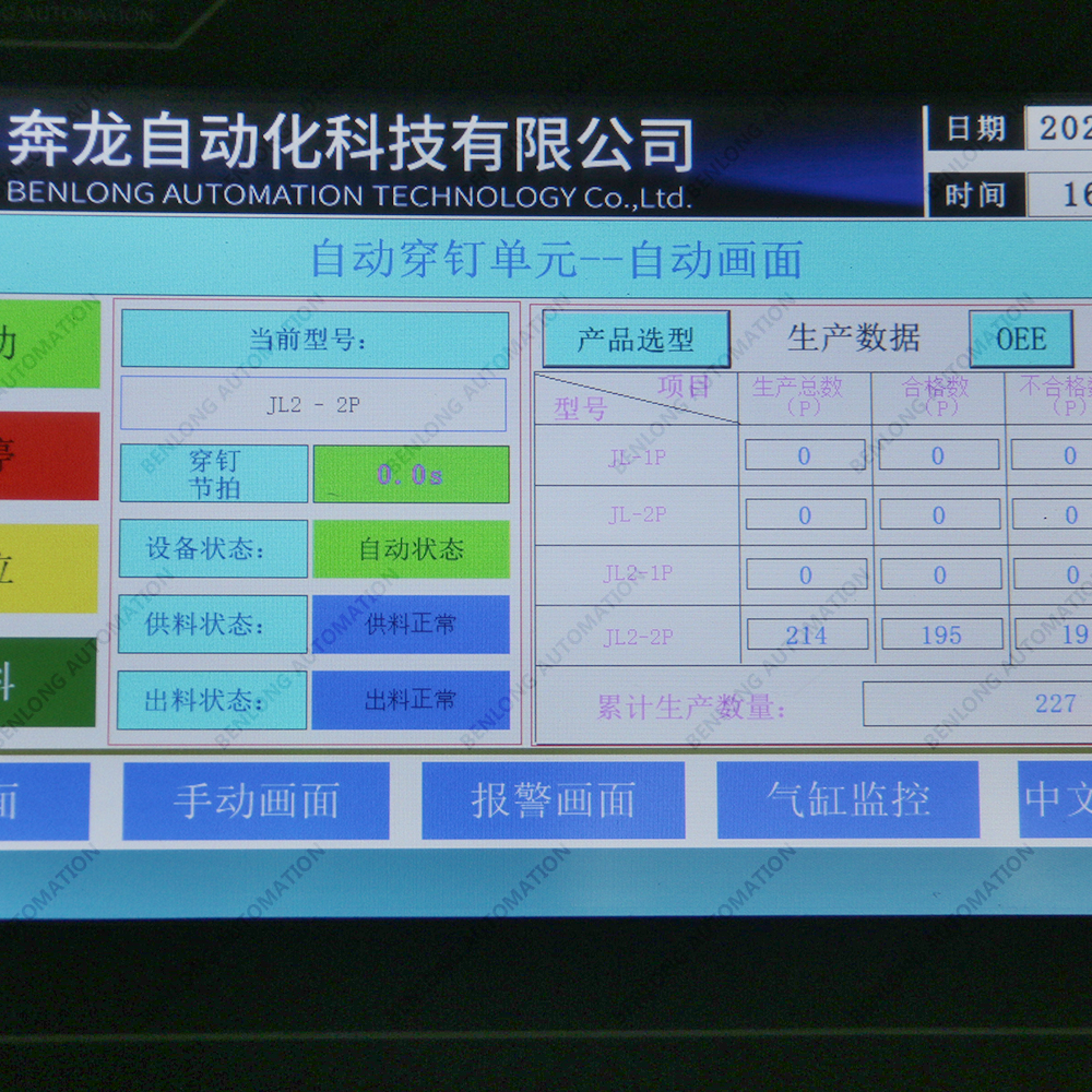 具有自动穿铆钉、CCD检测、不良品区分、缺料报警、翻转竖立等工序的在线监测、实时监控、质量溯源、条码识别、关键元器件