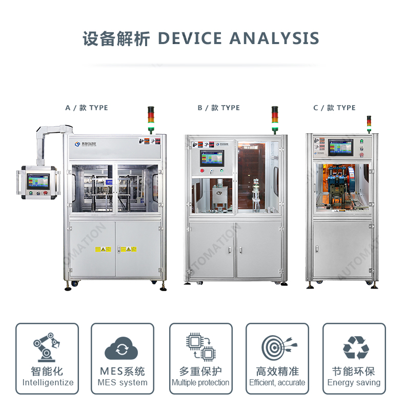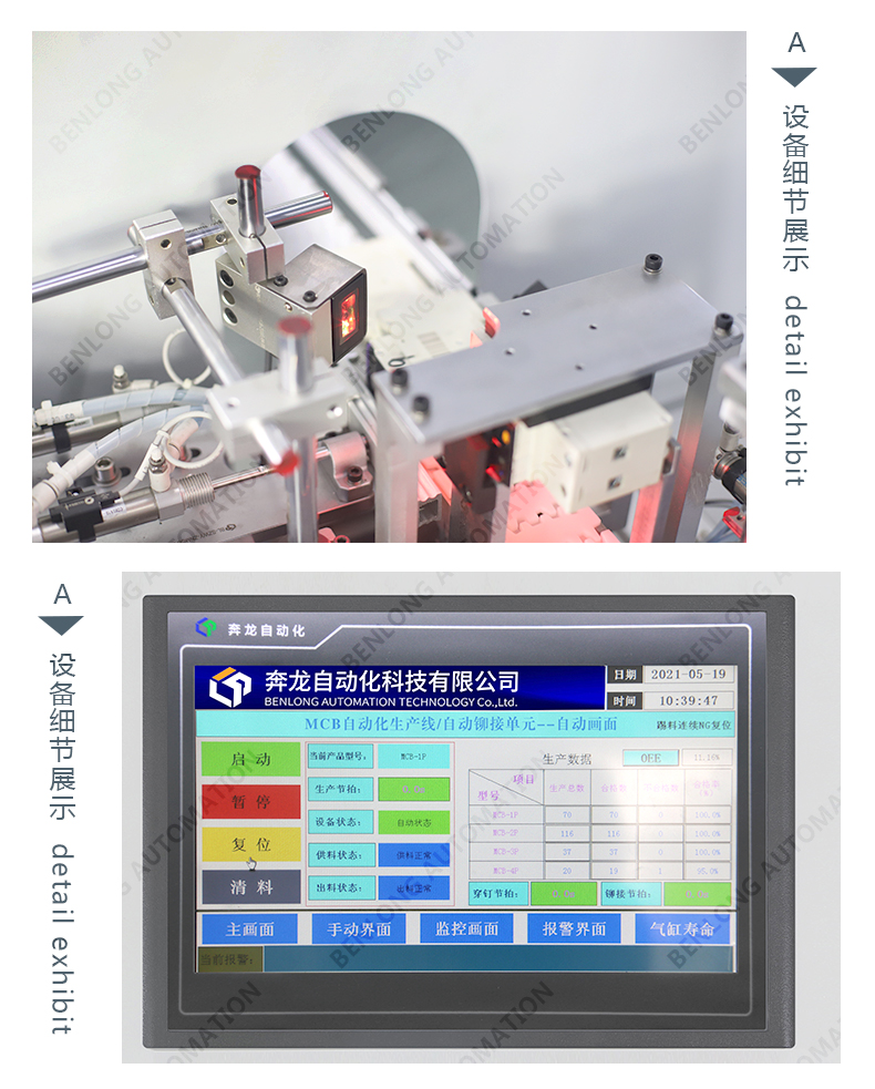 具有自动铆接、CCD检测、不良品区分、缺料报警、翻转竖立等工序的在线监测、实时监控、质量溯源、条码识别、关键元器件寿命监测、