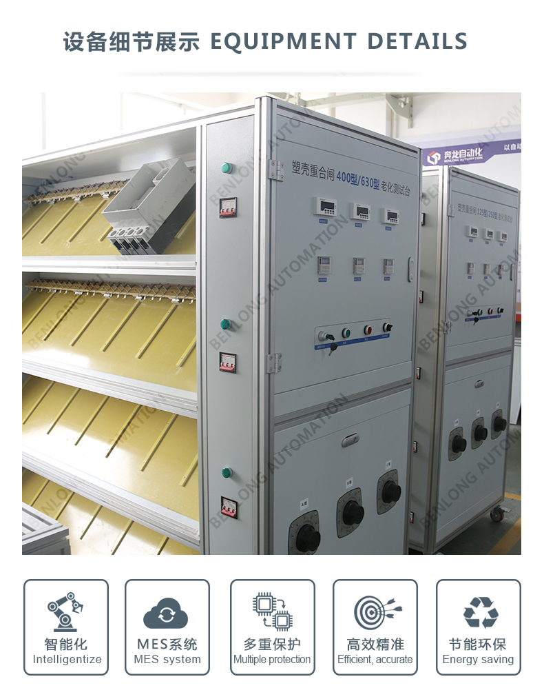 具有工位数可定制、63A~800A兼容、人工上料、条码识别、不良品显示、不良品监控数据、检测时间可任意设定、检测电流可任意设定、间隔时间