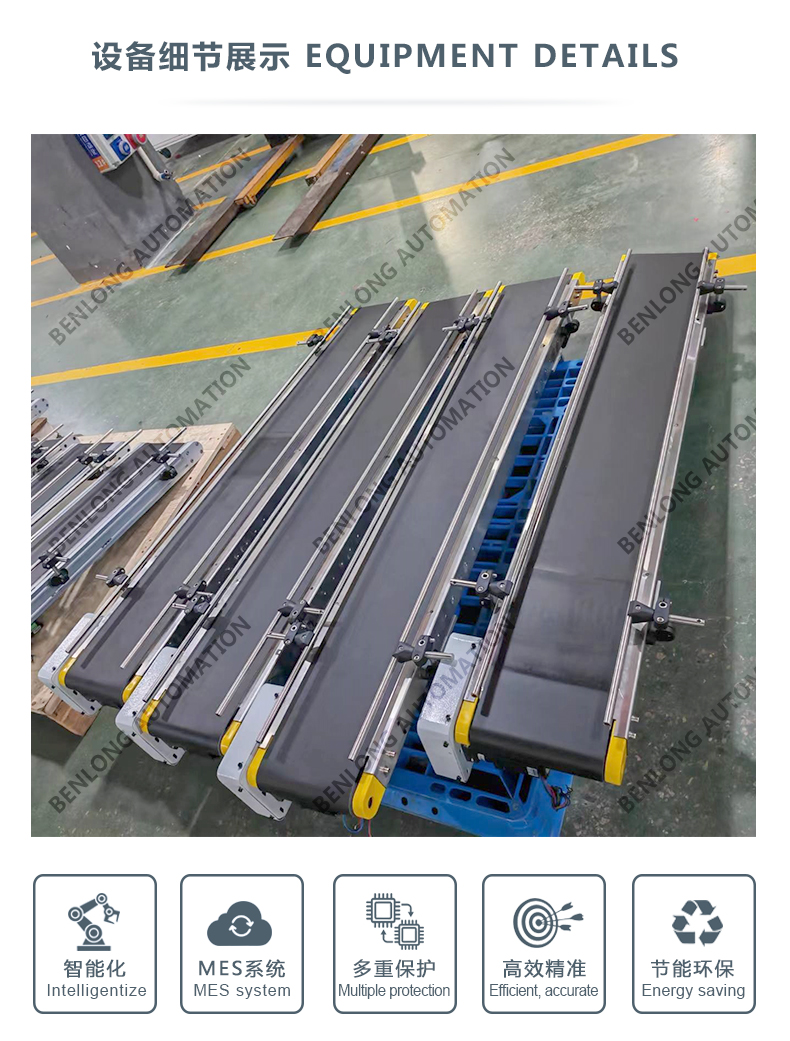 3、物流输送选配:根据产品的不同生产工艺及要求,可以采用平面皮带输送线、链板输送线、倍速链输送线、提升机+输送线、循环输送线等方式实现。
