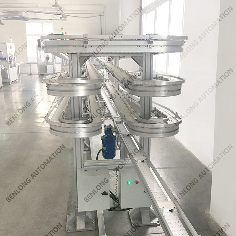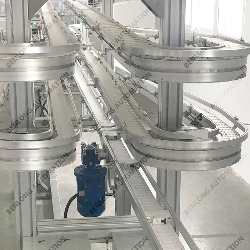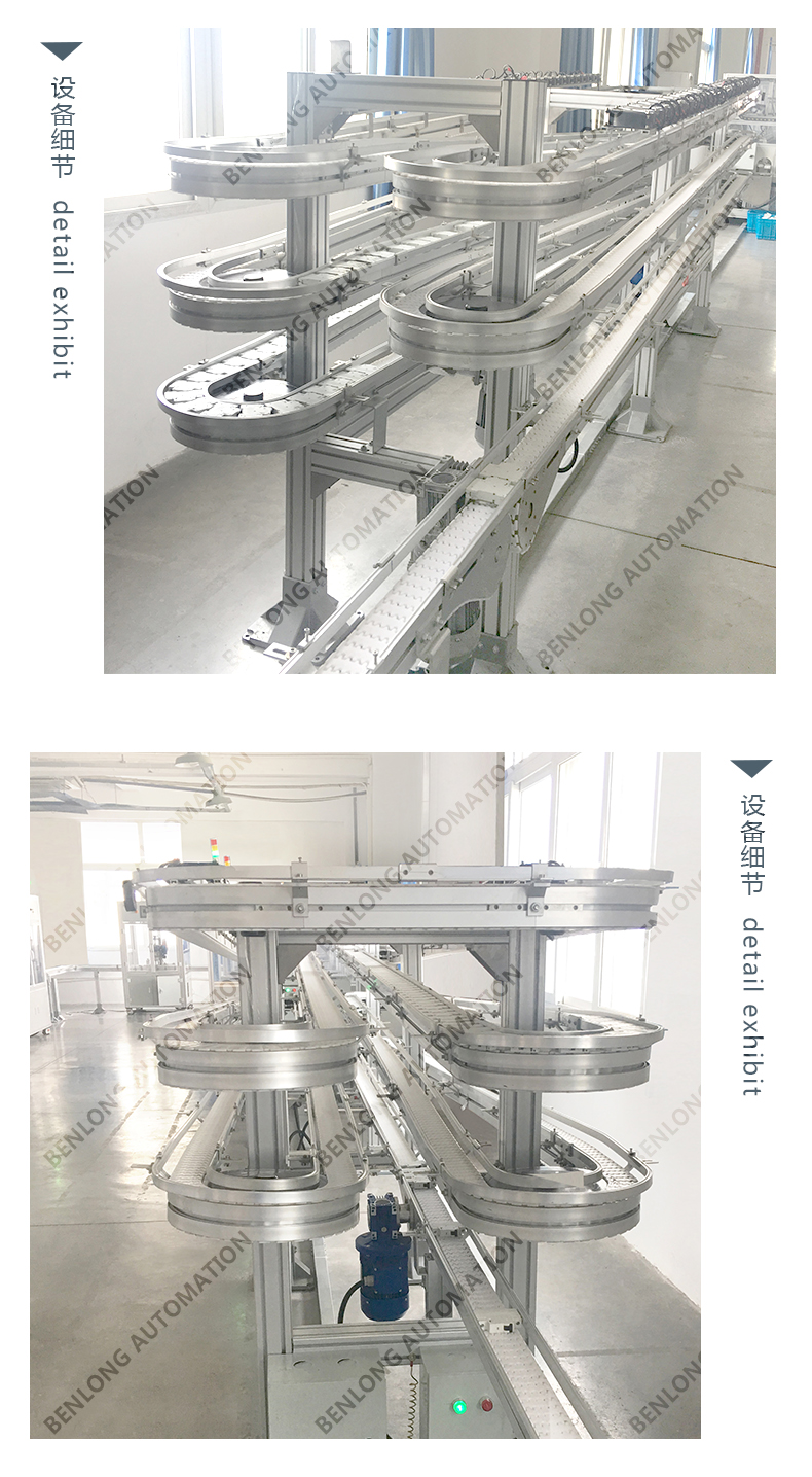 3、物流输送选配:根据产品的不同生产工艺及要求,可以采用平面皮带输送线、链板输送线、倍速链输送线、提升机+输送线、循环输送线等方式实现。