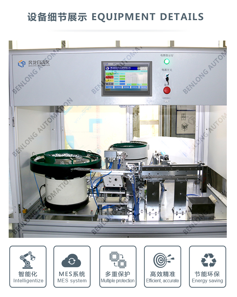 具有自动上料接线柱、接线板、螺丝、组装、扭力检测、合格不合格区分、下料工序的装配、在线检测、实时监控、数据存储、MES系统与ERP系统联网、参数任意配方、智慧能源分析与节能管理系统、智能装备服务大数据云平台等功能。