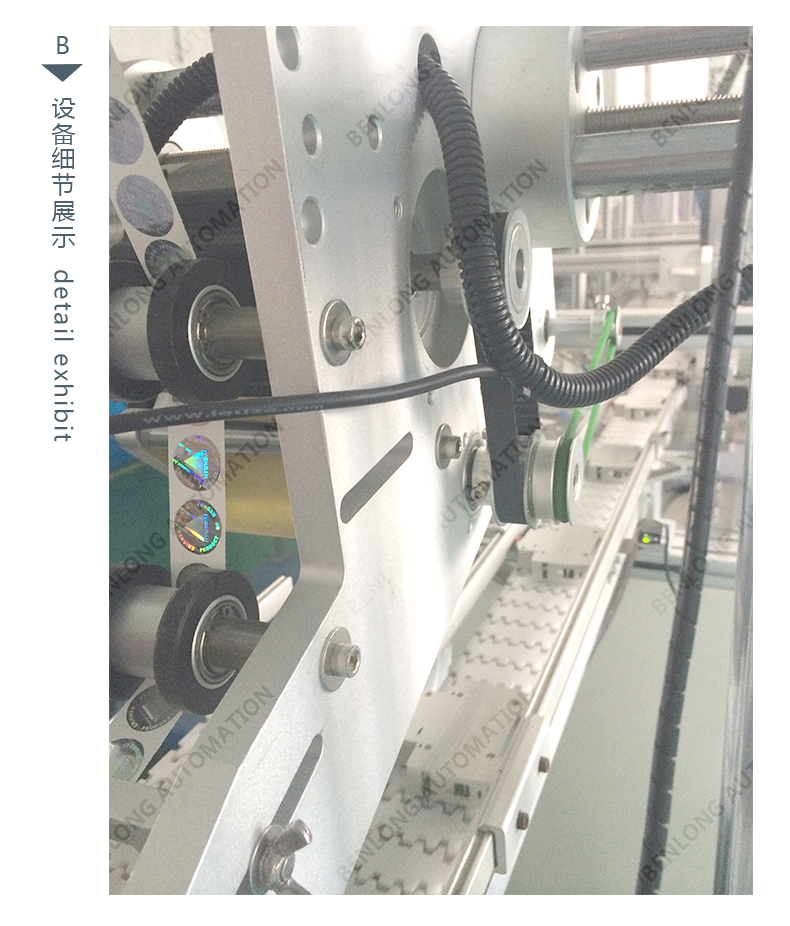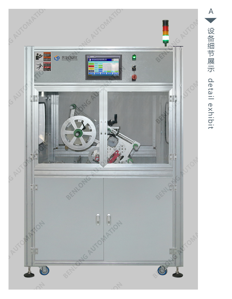 具有自动贴标(二维码标签、条形码标签、ID码标签、图案等)、CCD检测、不良品区分、缺料报警、竖立翻转水平、