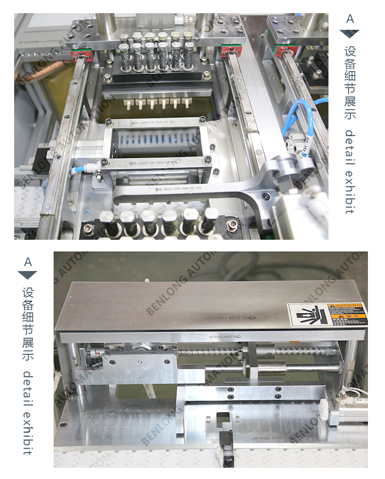 具有自动扫码/读码、通断检测、低倍检测、高倍检测、CCD观察窗颜色检测、内跳外不跳、不良品区分、缺料报警、不良品回流返工等工序的在线监测、