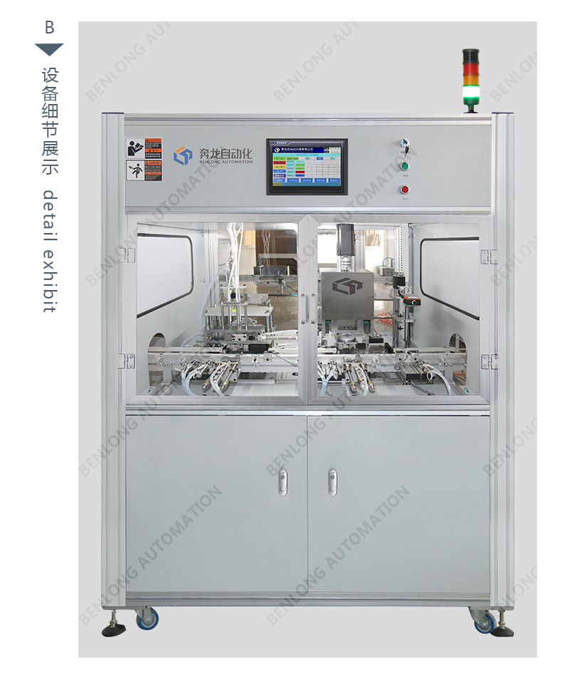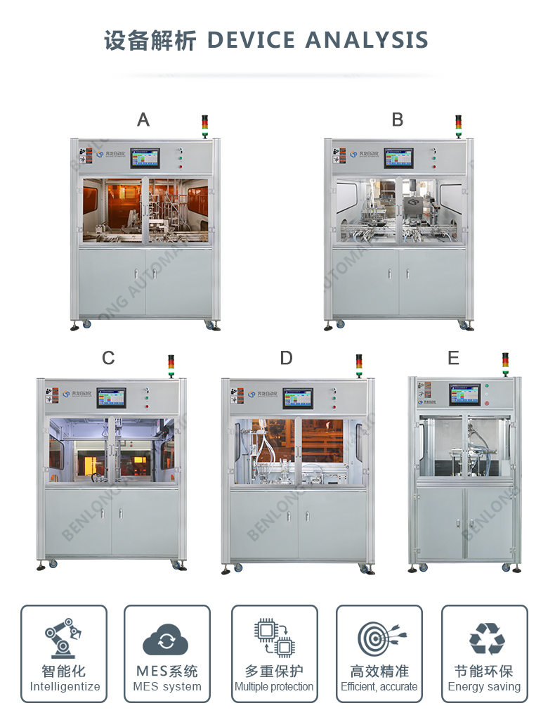 具有自动穿铆钉、CCD检测、不良品区分、缺料报警、翻转竖立等工序的在线监测、实时监控、质量溯源、条码识别、关键元器件寿命监测、数据存储、
