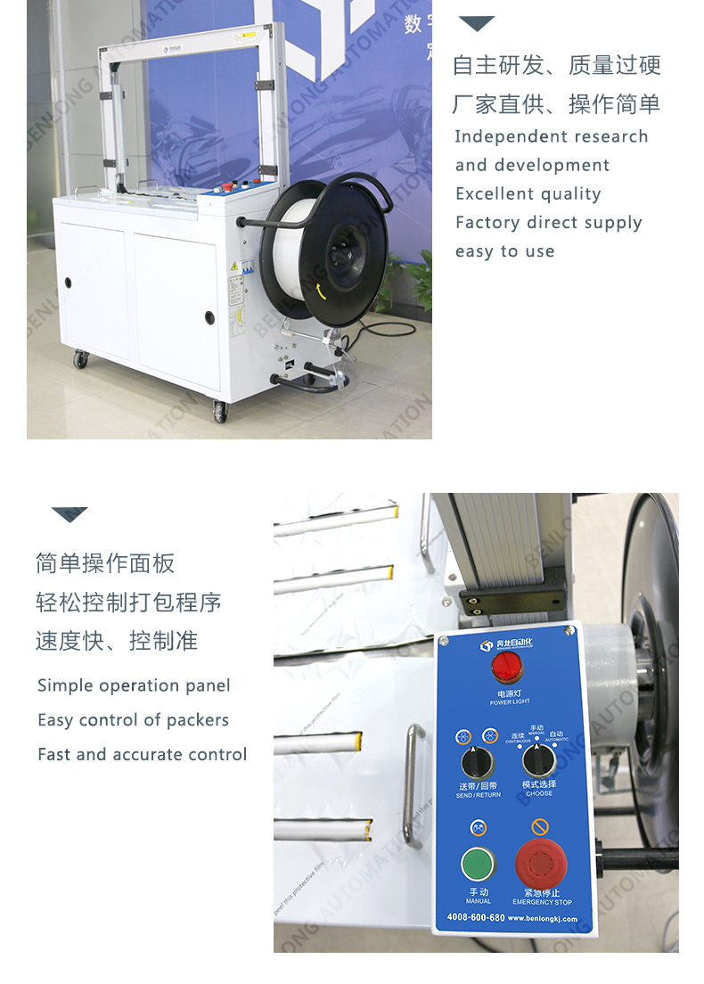 人工放料或其他包装设备出料口自动放料,自动捆扎。                    关于售后