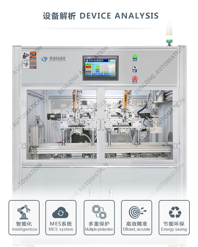 具有自动装配上盖、中盖螺丝、自动检测扭矩、不良品区分、下料、缺料/满料报警等工序的在线监测、实时监控、质量溯源、条码识别、