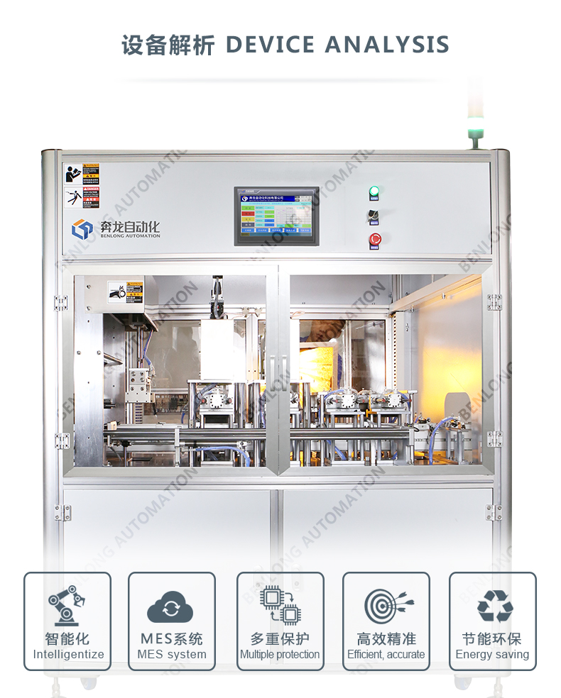 具有自动开距、超程检测、机械磨合、不良品区分、下料、缺料/满料报警等工序的在线监测、实时监控、质量溯源、条码识别、关键元器件寿命监测、