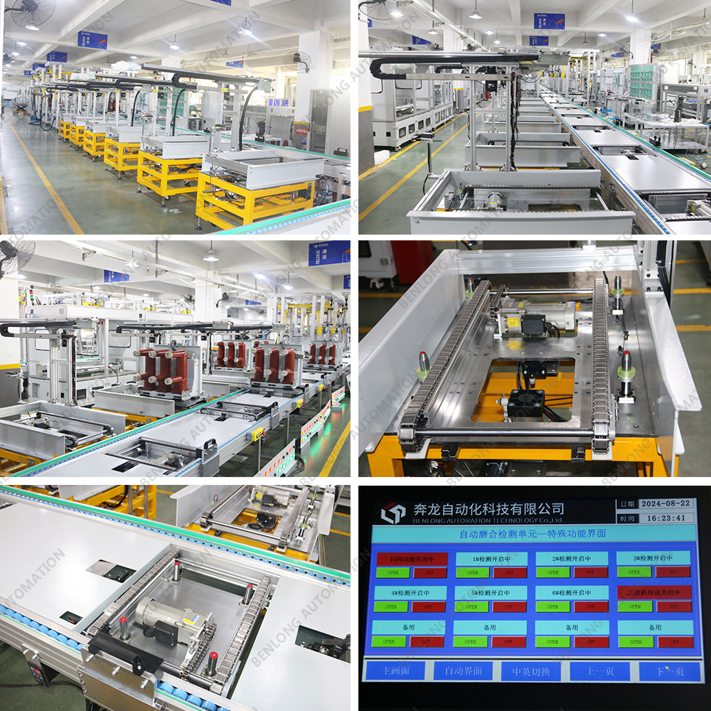高压(10KVA)、回路电阻、底盘车装配、机器人锁螺丝、底盘车翻转、底盘车接线、外观封板装配、二次综合检测、龙门架自