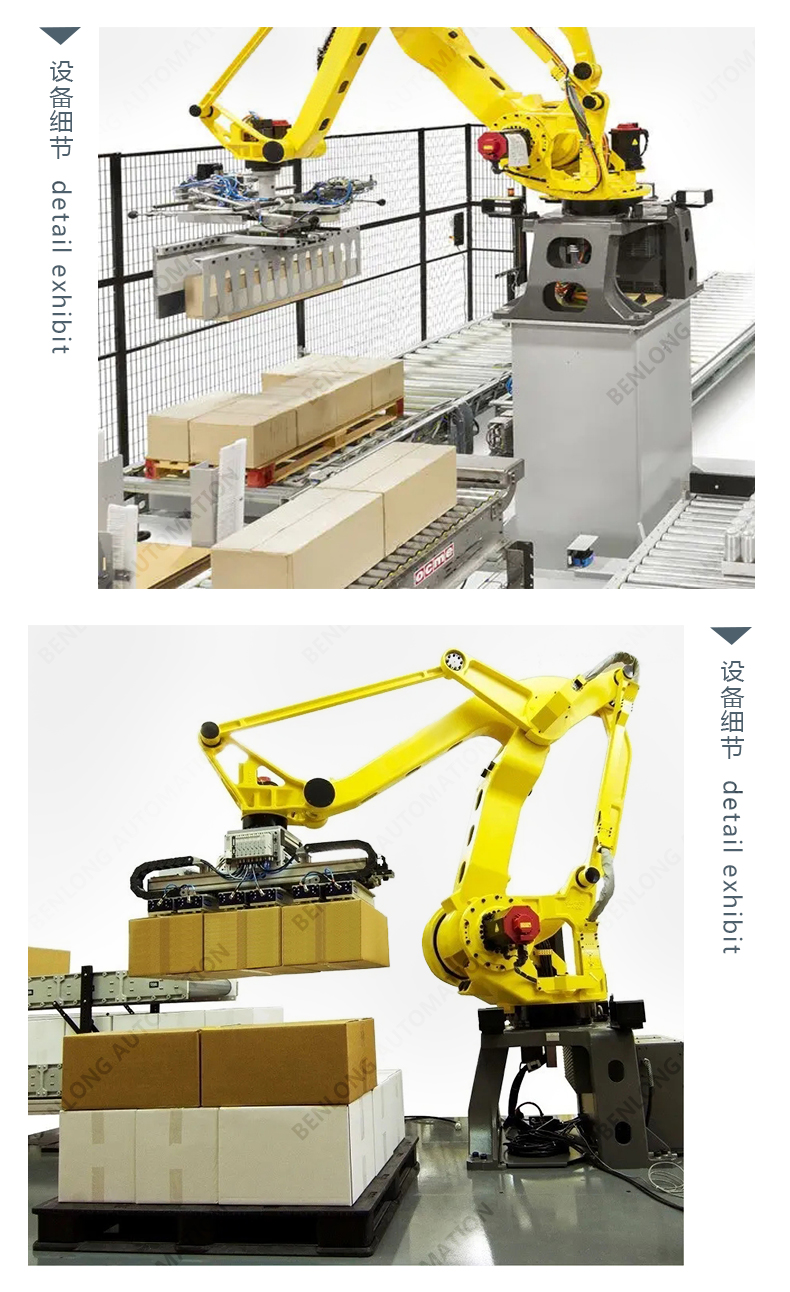 具有自动隔料分组、产品装袋、热封塑、小盒成型、产品装入小盒内、小盒贴标签、中盒成型、小盒产品装入中盒内、中盒贴标签、外箱自动成型、中盒产品装入外箱内、外箱自动贴标签、检测、喷码、封透明胶带、捆扎带、90°旋转、下料码垛、缺料报警等工序的在线监测、实时监控、质量溯源、条码识别、关键元器件寿命监测、数据存储、MES系统与ERP系统联网、参数任意配方、智慧能源分析与节能管理系统、智能装备服务大数据云平台等功能。